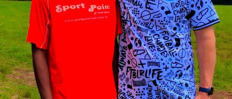Am Peter Kimani and a player at the Mighty Eagles Soccer Academy, MESA.